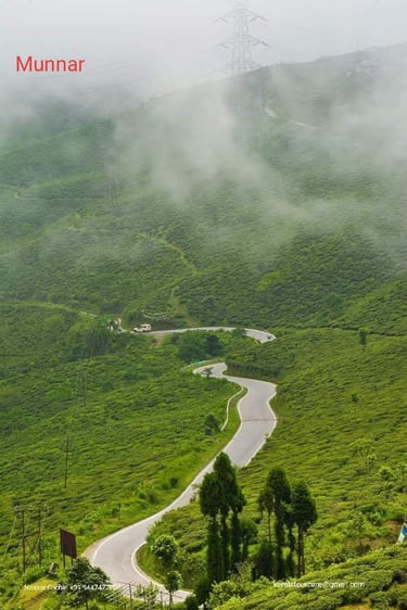 Munnar, located in the Western Ghats of Kerala, India, is a scenic hill station known for its lush green tea gardens, misty mountains, and serene natural beauty. Here's a list of beautiful sightseeing places in Munnar: